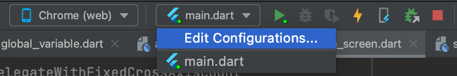 Chrome(web)을 선택한 상태에서 main.dart 항목에 Edit Configuration을 클릭한 다음