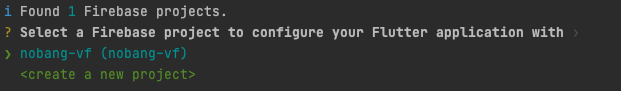 flutter 프로젝트를 생성한 뒤에 거기에서 "flutterfire"를 실행해야한다.